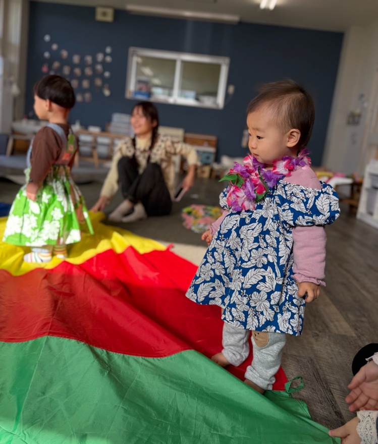 先日、犬目幼稚園の未就園児教室いぬめミニで、ハワイアンリトミックを開催させていただきました🥰ウクレレに触れたり、ハワイアン調の童謡でシフォンスカーフをヒラヒラして踊ったり、パラバルーンをやったり、みんなで楽しい時間を過ごすことができました🤗🌺 カラフルなパウスカートやレイを身につけたみんなの姿がとても可愛らしく 、癒されました~💓